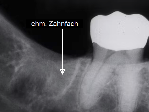 Diese nicht vollständig ausgeheilte Zahnfächer wurden mit schlechter Durchblutung und/oder chronischer Entzündung durch anhaltender Infektion der Wundstelle in Verbindung gebracht.